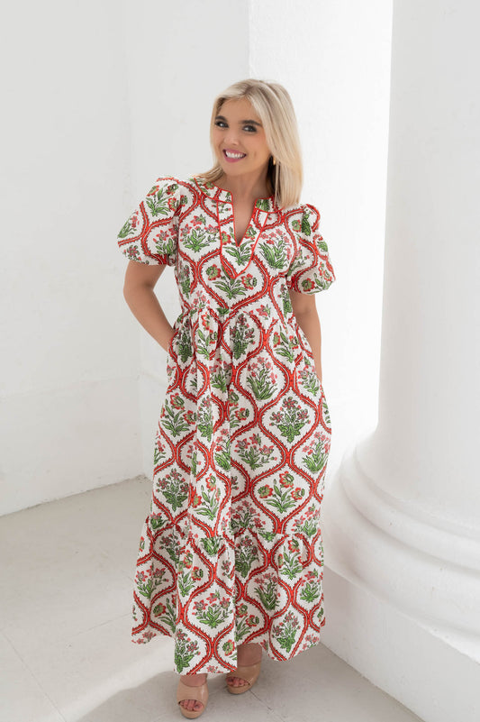Adorably Yours Teal Printed Balloon Sleeve Dress