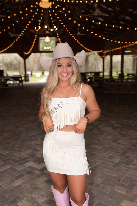 White Fringe Crop Top