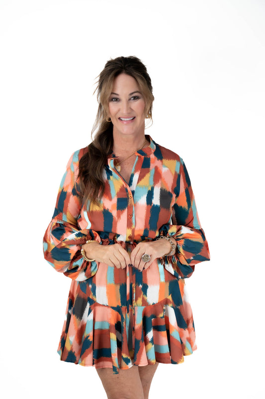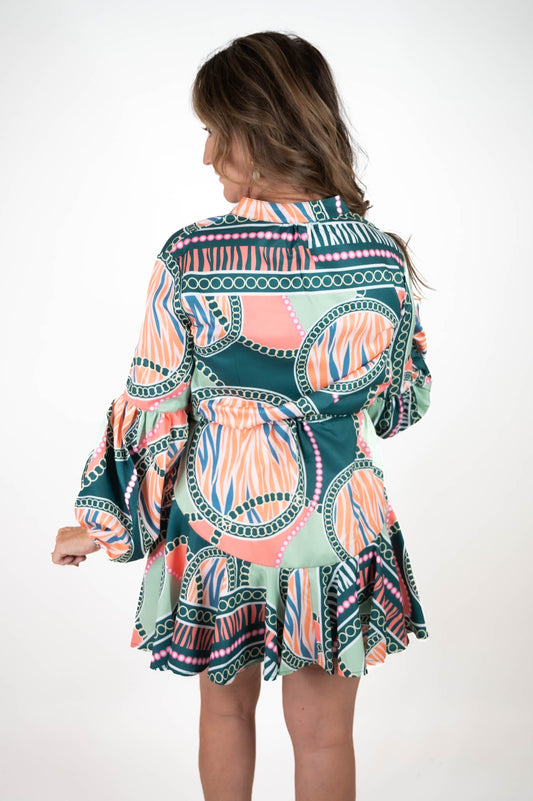 Adorably Yours Teal Printed Balloon Sleeve Dress
