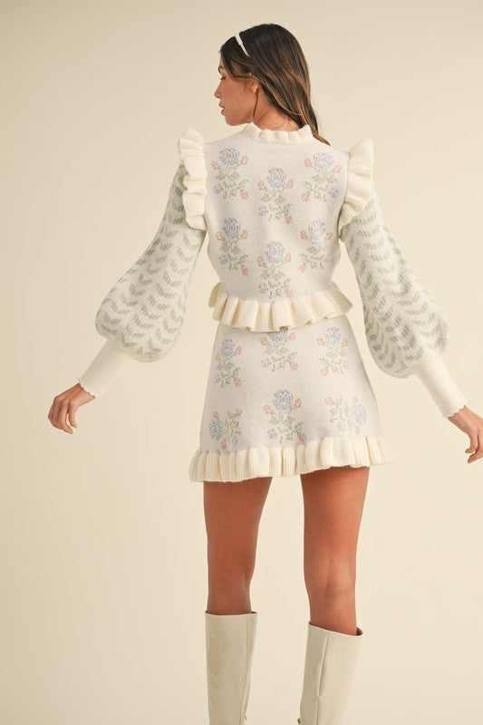 Floral Jacquard Knit Skirt Set