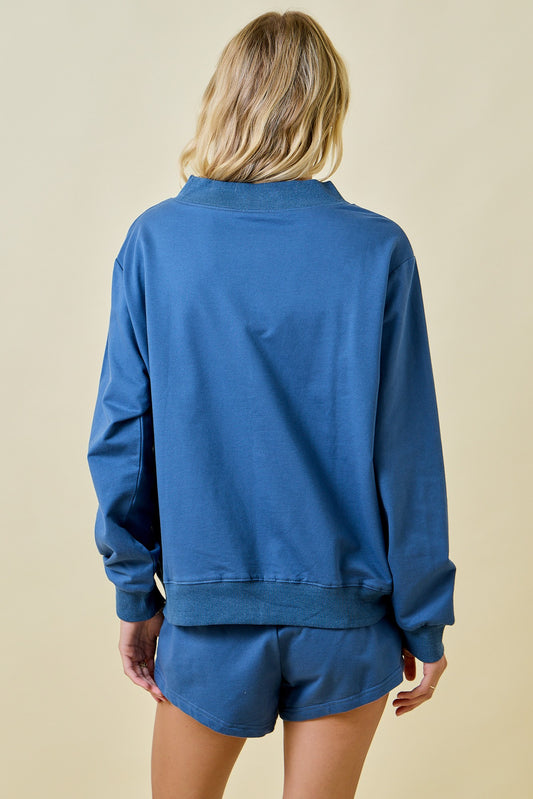 Denim Laidback Luxe Crewneck/Shorts Set