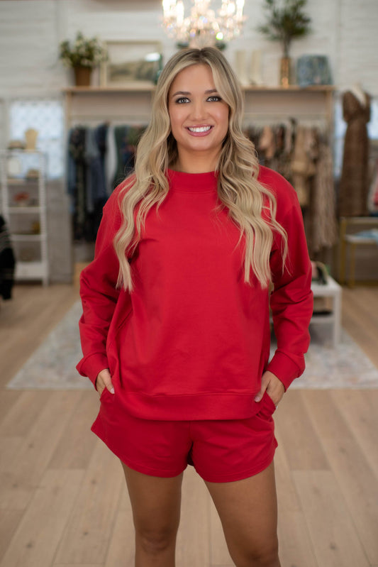 Red Laidback Luxe Crewneck/Shorts Set