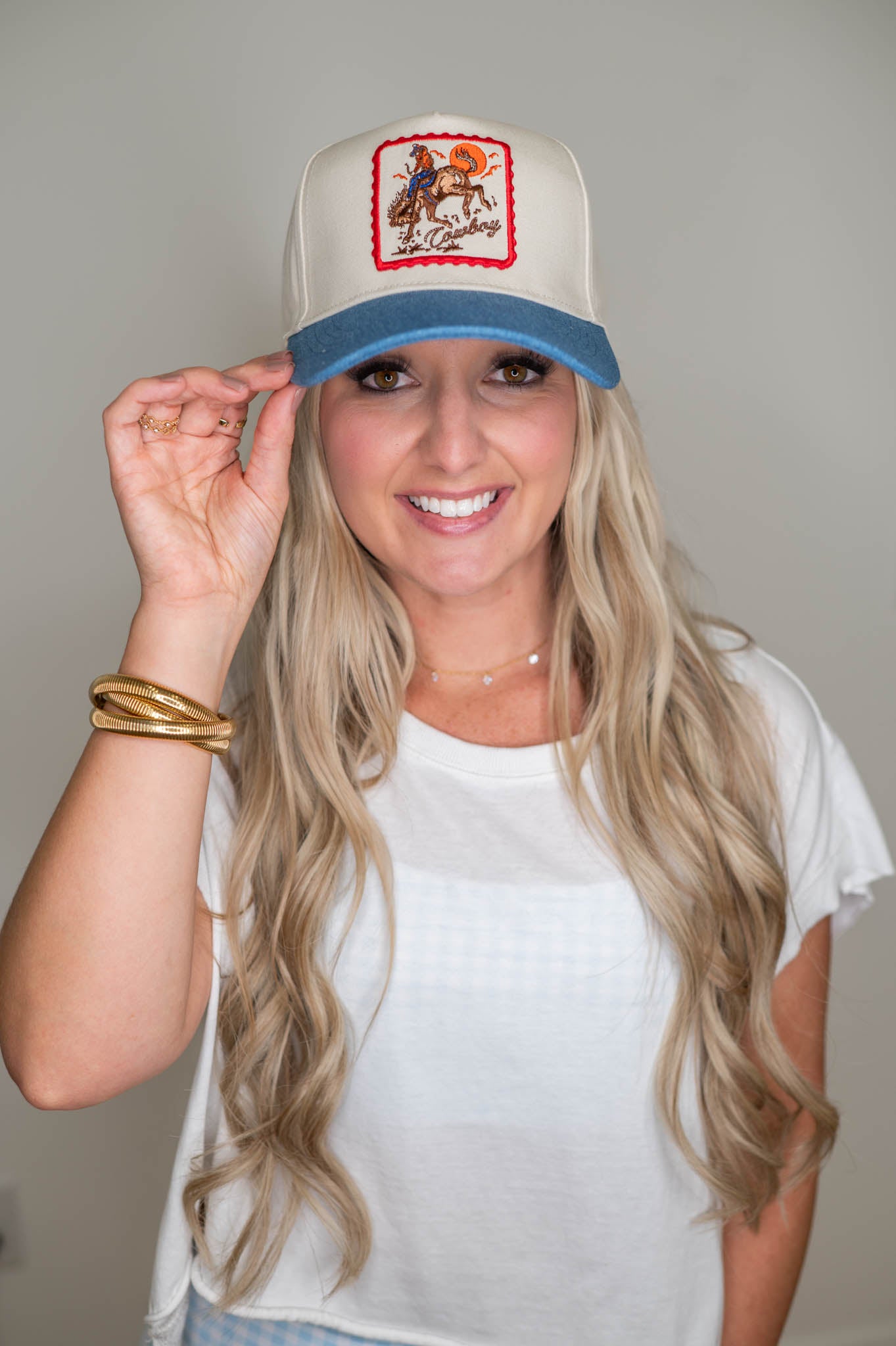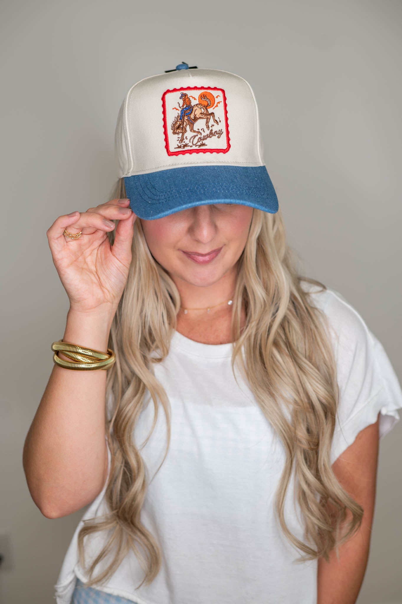 Detailed Cowboy Horse Embroidery Patch Dark Denim Cap