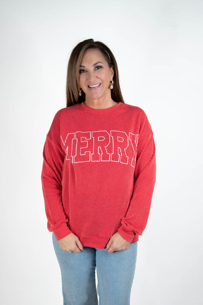 - "MERRY " RIBBED CHRISTMAS HOLIDAY GRAPHIC TEE