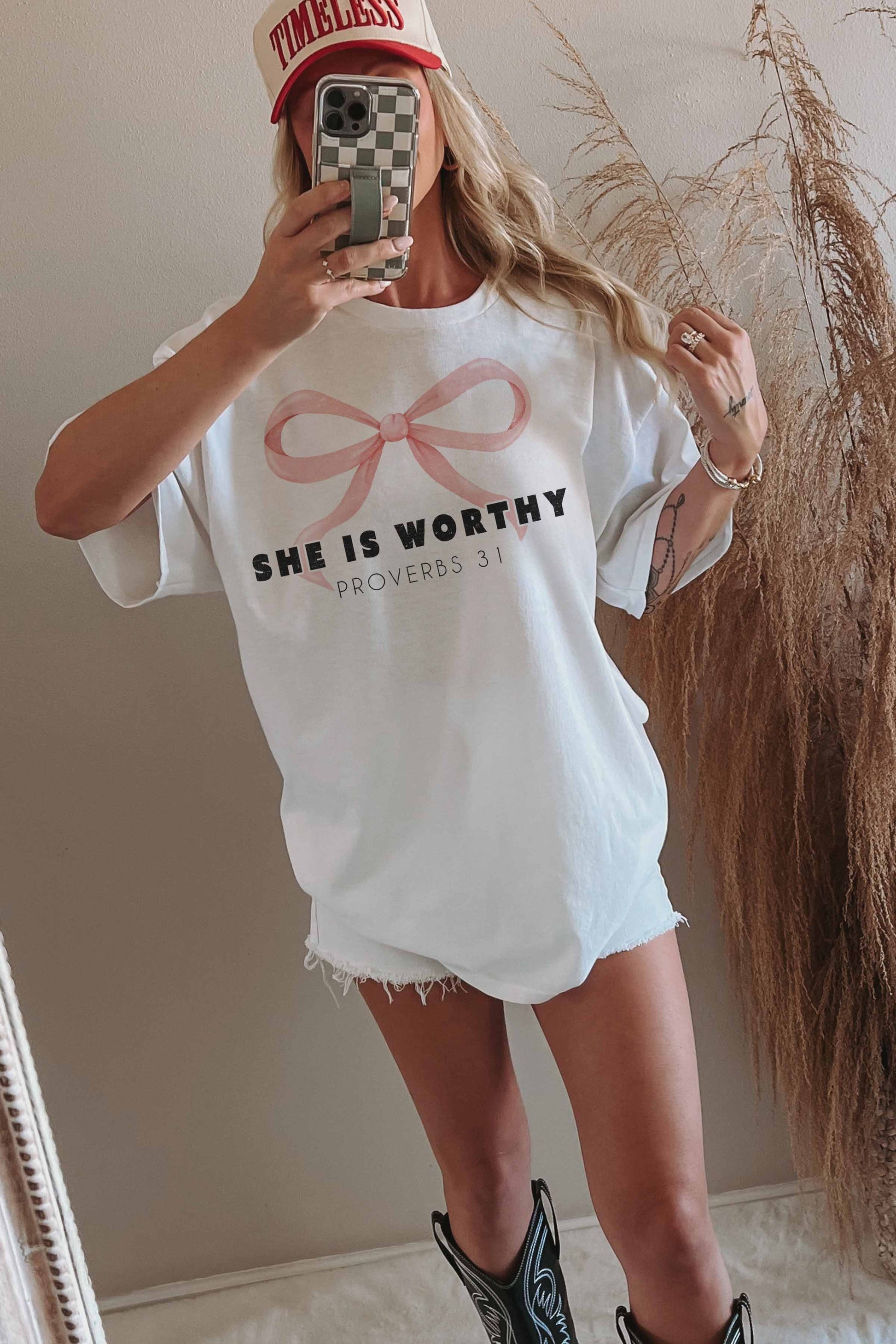 SHE IS WORTH OVERSIZED GRAPHIC TEE